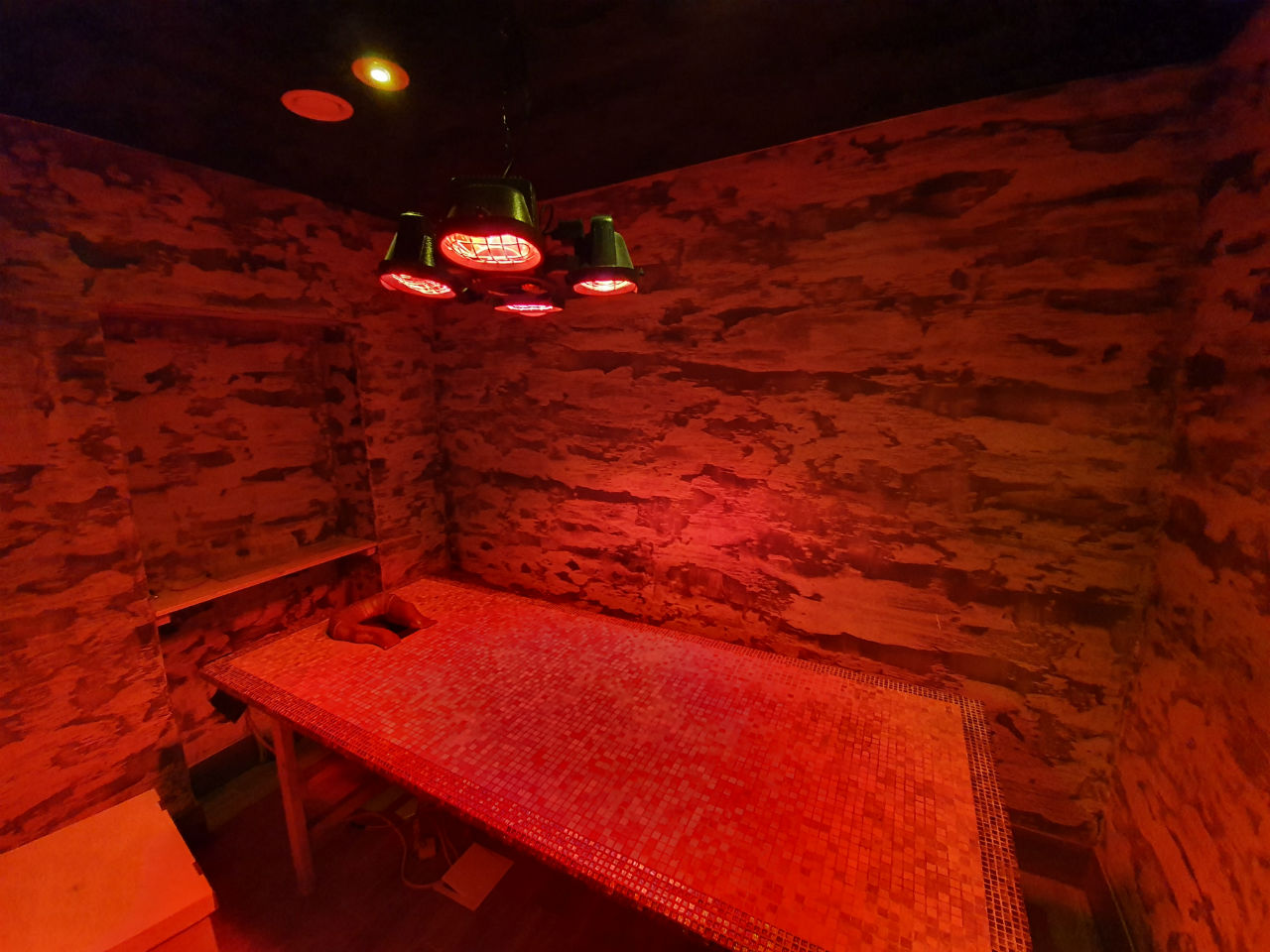 Unikali keramikinė pirtis individualioms procedūroms su nefrito akmenimis ir marmuro gultais.